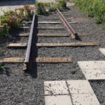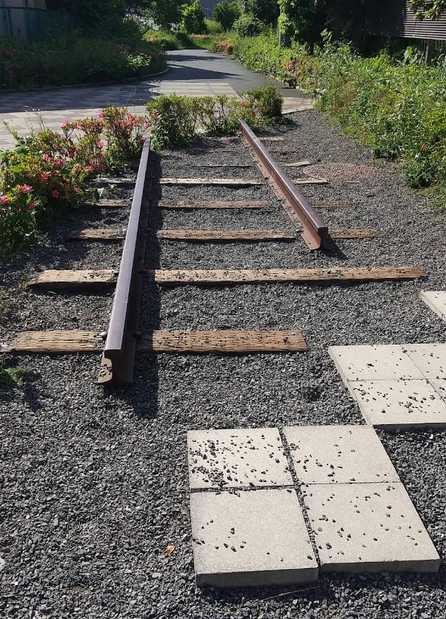 南端には、当時の線路がモニュメントとして残されている。