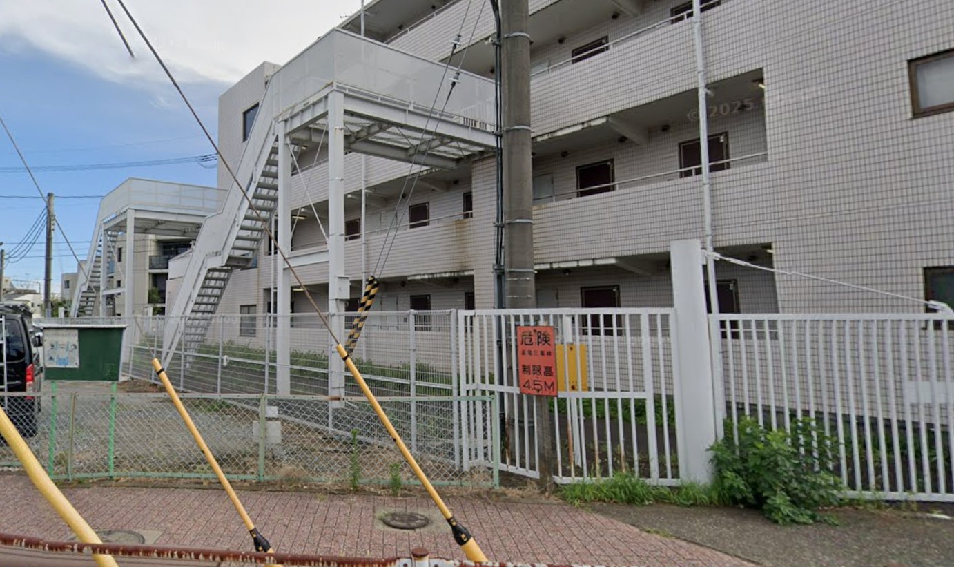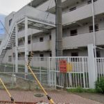 「ドゥエリング国立」の東側には3階のぼる外階段がある。引き込み線をまたいで歩道橋となっちている。