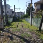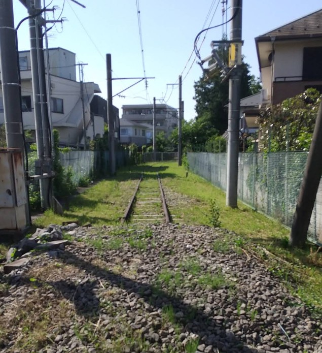 当時の線路がアスファルトに埋め込まれるように残されていたと記憶しているが、残念ながらいつのまにか撤去されてしまった。
