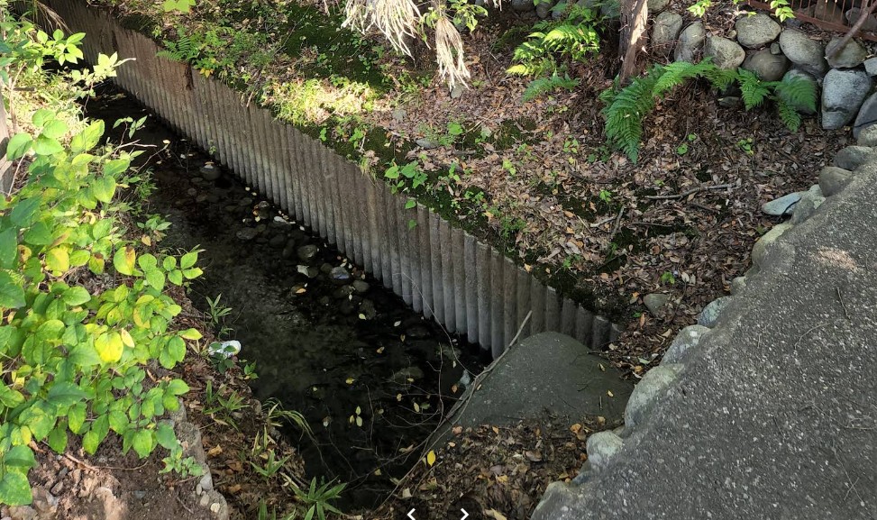 立川市若葉町と国分寺市北町の市境、ここから砂川用水は南北に分かれて地上にでてきます。ここから東側はほとんどが私有地内になるため、地上にあるものの、なかなか見ることができません。