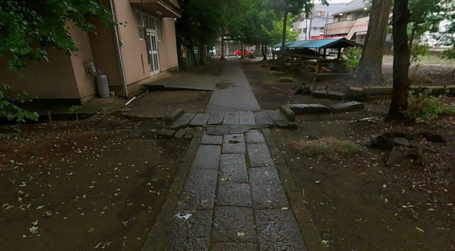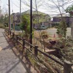 砂川用水が暗渠になっていると思われる歩道は、天皇橋・八雲神社の南側をとおり、五日市街道の下に続いています。