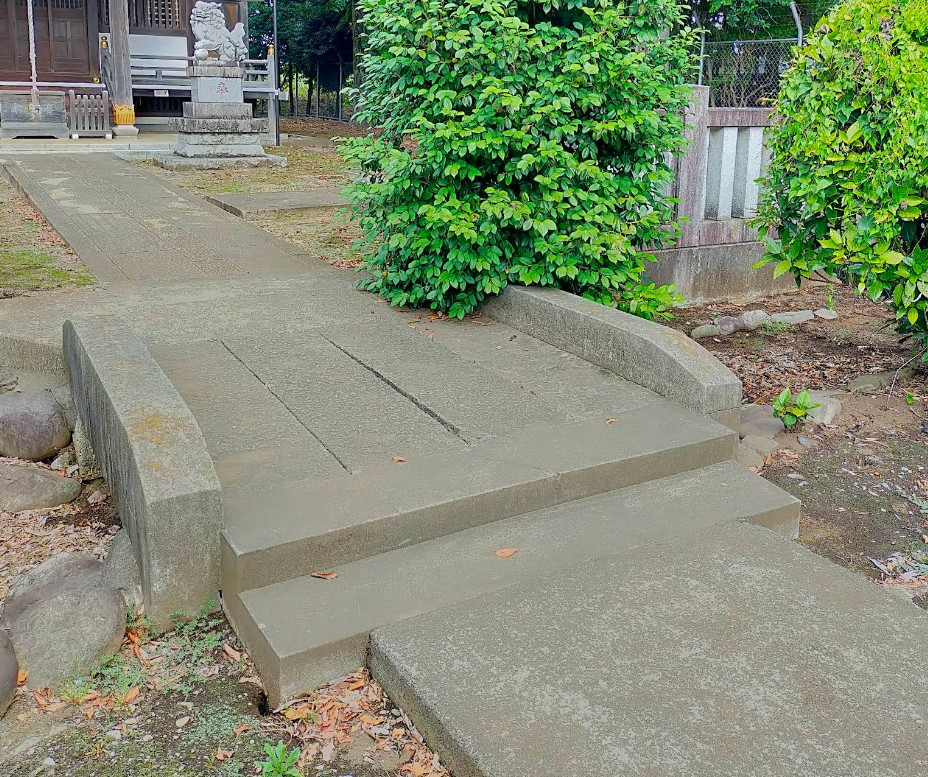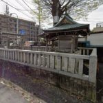 北側の砂川用水は「北町愛宕神社」の境内を流れています。境内に石でできた「神橋」と呼ばれる橋が架かっています。神明社の境内にも、名前は無いものの石でできた橋がかけられています。その後はまた私有地を流れ次にでてくるのはダイソーの前ですが、ふたたび暗渠になっているので流れを見ることはできません。