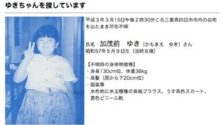 1991年3月15日、三重県四日市市で小学2年生の女児が自宅から行方不明となった。帰宅後に飲みかけのココアを残したまま姿を消し、約1時間の空白の後に失踪。怪文書も届いたが現在も未解決となっている。