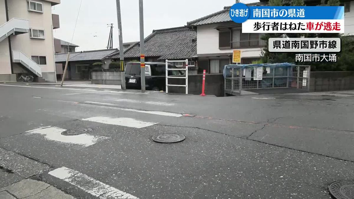 警察によりますと、24日午後5時20分ごろ、信号機のない横断歩道を歩いて渡っていた南国市の70代の女性が横から来た車にはねられましたが、車はそのまま現場から逃走しました。