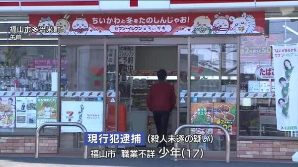 コンビニ店員をナイフで刺したか 殺人未遂容疑で中国国籍の少年(17)を逮捕 広島・福山市|FNNプライムオンライン