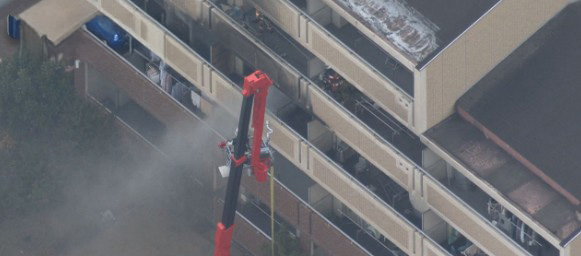 火災現場の5階建てマンション