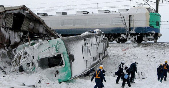 2005年(平成17年)12月25日午後7時14分頃、山形県東田川郡庄内町のJR東日本・羽越本線(北余目駅〜砂越駅間)で、秋田発新潟行きの特急「いなほ14号」(6両編成)が運行中に局地的な**突風(横風)を受けて脱線転覆する事故が発生した。事故現場は最上川第二橋梁通過直後の盛土区間であり、列車は時速約100kmで走行していたとみられる。