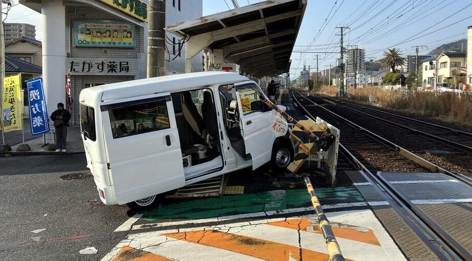 13日午前9時45分ごろ、広島市西区高須駅近くの踏切で乗用車が遮断機に突っ込み、遮断機が支柱ごと根元から折れる事故が発生した。事故に巻き込まれ、後続の車両を含む3台の車両が絡む玉突き事故となった。