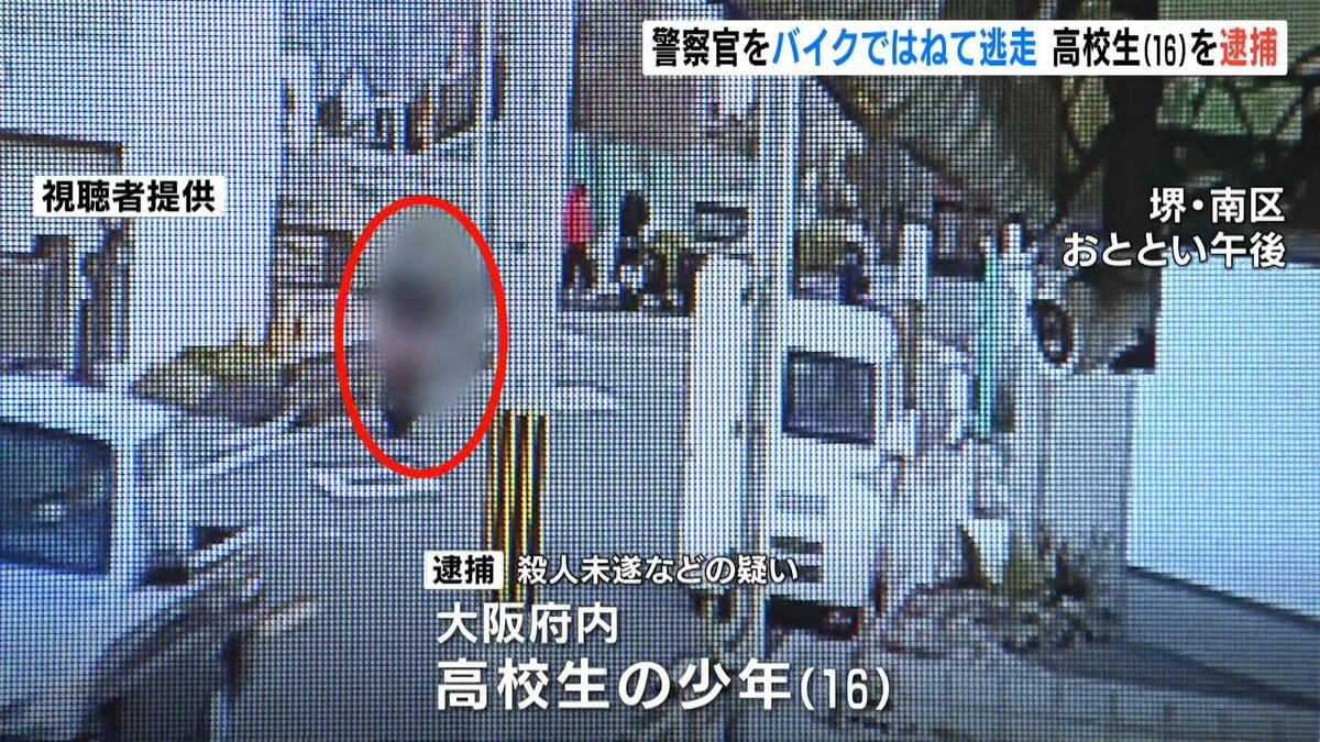 1月12日、大阪府堺市で警察官がバイクにはねられてケガをした事件で、警察は逃走していた16歳の高校生の少年を殺人未遂の疑いなどで逮捕しました。 逮捕されたのは、大阪府内に住む16歳の高校生の少年です… (1ページ)