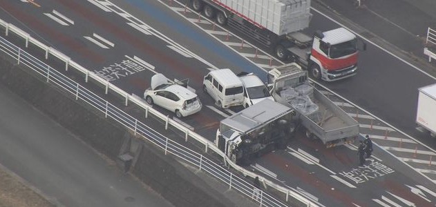 警察と消防によると、北九州市方面から福岡市方面へ走行していた中型トラックが前方の別のトラックに追突し、その衝撃でトラック2台が横転したほか、普通乗用車4台が巻き込まれたとみられている。