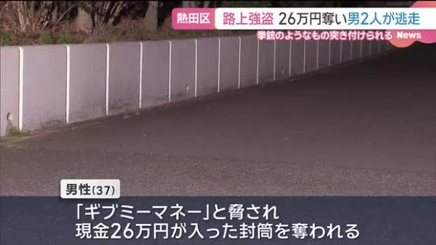 27日夜、名古屋市熱田区で男性が男2人に拳銃のようなものを突き付けられて脅され、現金26万円を奪われ...