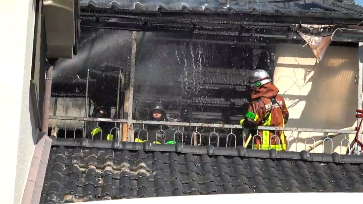 近隣住民が「2階から煙が出ている」と119番通報し、消防車など約20台が出動して消火活動にあたった。火は約30分から40分後に消し止められたが、2階部分の1室が全焼した。現場では白い煙とともに黒煙が市街地側からも確認されたという。けが人の情報はなく、出火当時、全焼した部屋に住む日高二美さん(62歳)は不在だった。