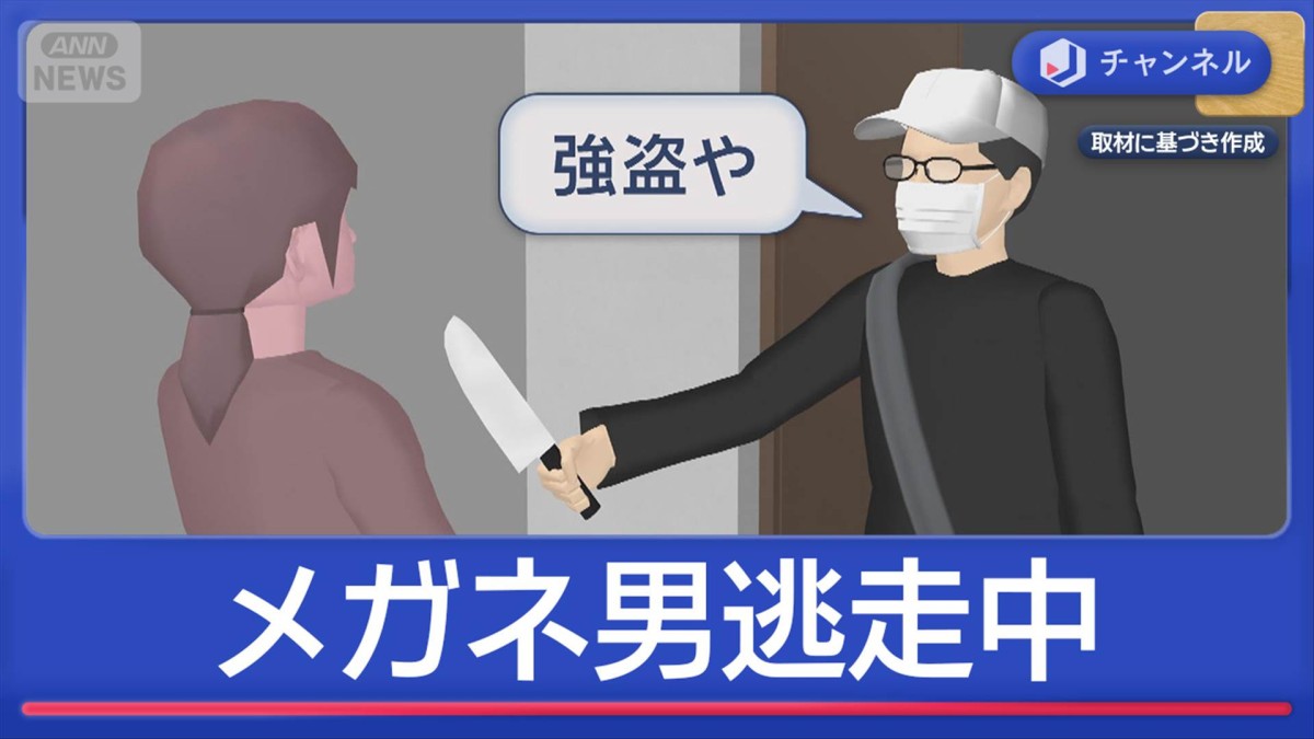 メガネをかけた強盗犯が今も逃走中です。住人の女性に刃物を突きつけ暴行か…宅配業者を装っていたとみられています。