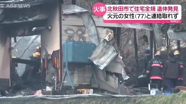 3日未明、北秋田市で住宅1棟を全焼する火事があり、焼け跡から1人の遺体が見つかりました。火事のあと、火元の77歳の女性と連絡が取れなくなっています。警察が遺体の身元の確認を進めるとともに消防